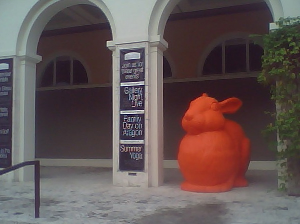 Anyway. What’s done is done. The three highlights of my stay were seeing this orange rabbit (a reminder to us all of dangers of GMO carrots), passing a store called Coral Gables Juice Bar & Muscle Pizza (???), and visiting Books & Books, which, coincidentally, is not a part of Miracle Mile and (not coincidentally) wonderful.