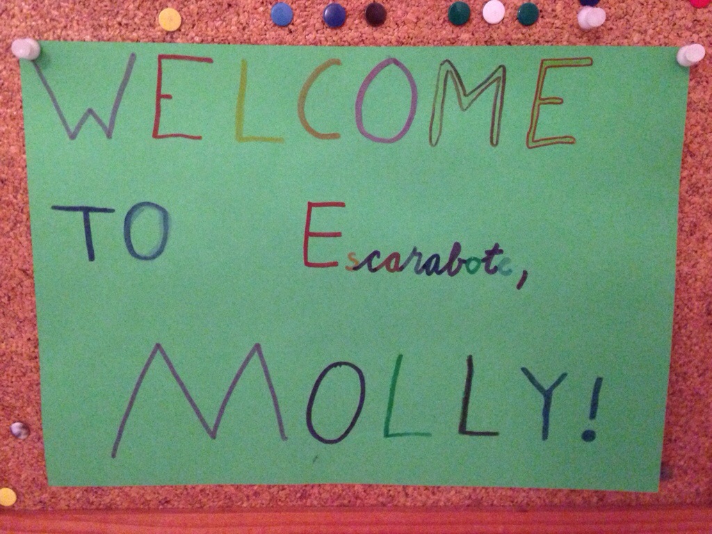 Montse, the English teacher at my school, picked me up from the airport in Santiago, carrying a sign the students had made.